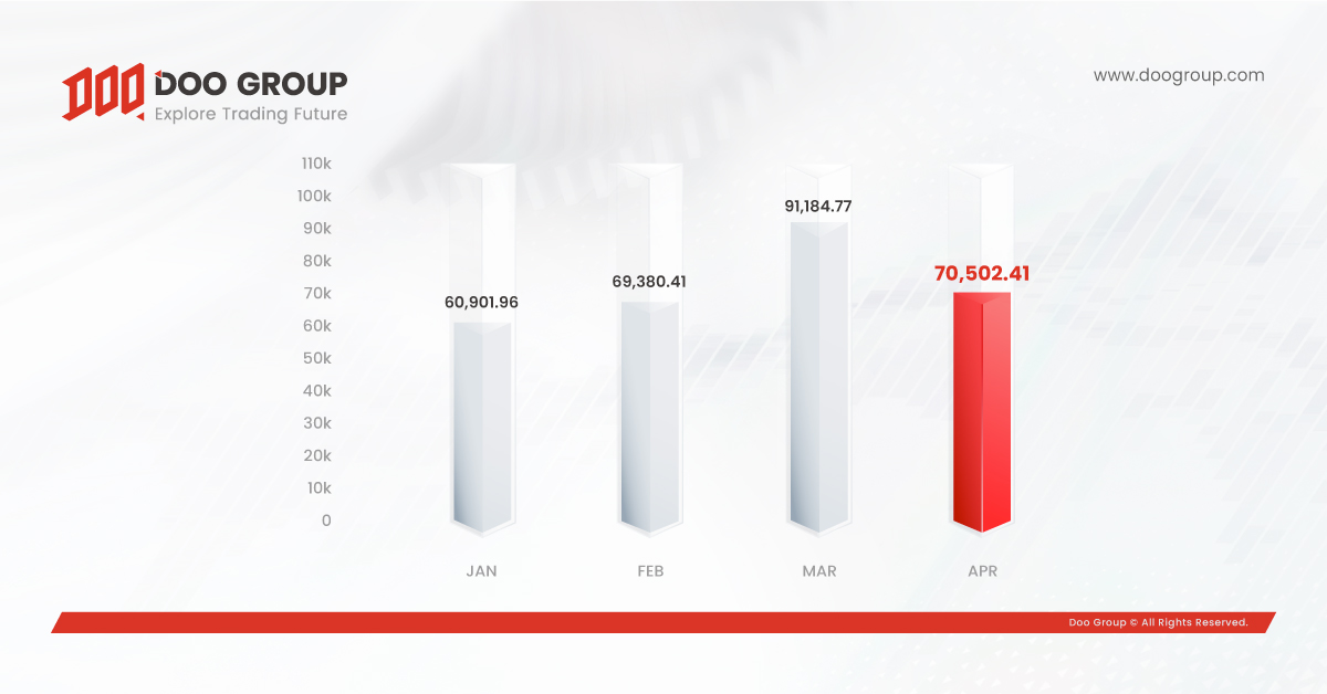 According to the report, Doo Prime’s total trading volume in April 2023 sits at USD70.50 billion, a decrease of 22.68% from the previous month. Apart from that, the average daily volume (ADV) in April was USD2.35 billion, a decrease of approximately 20.10% from March.
