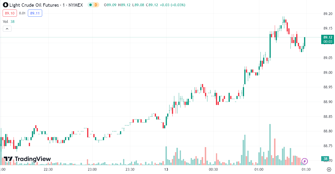 During the Asian, European, and American trading sessions, prices consistently pushed higher, surpassing previous highs. Ultimately, in the late American session after 21:00 UTC, oil prices accelerated their upward movement, breaching the $89 mark and reaching around $89.30 before closing strongly.