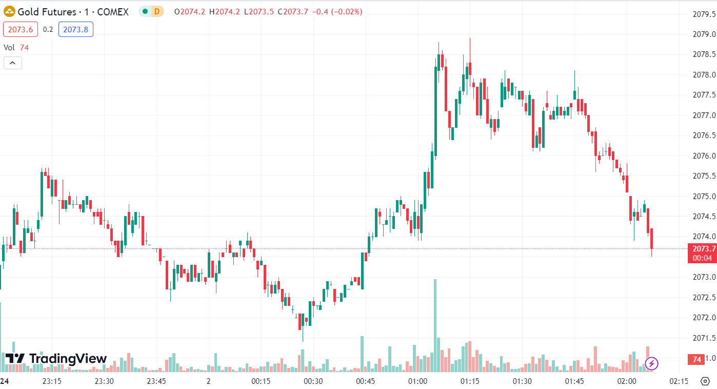 In the U.S. session, a second rebound faced further resistance around the USD 2069 level, concluding with a weak closing.