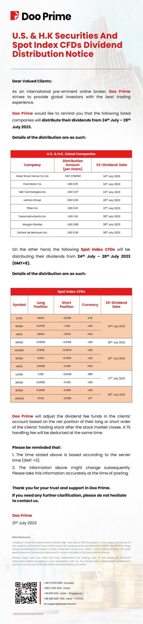2023-07-21 | Dividend Distribution Notice , Securities , Spot Index
