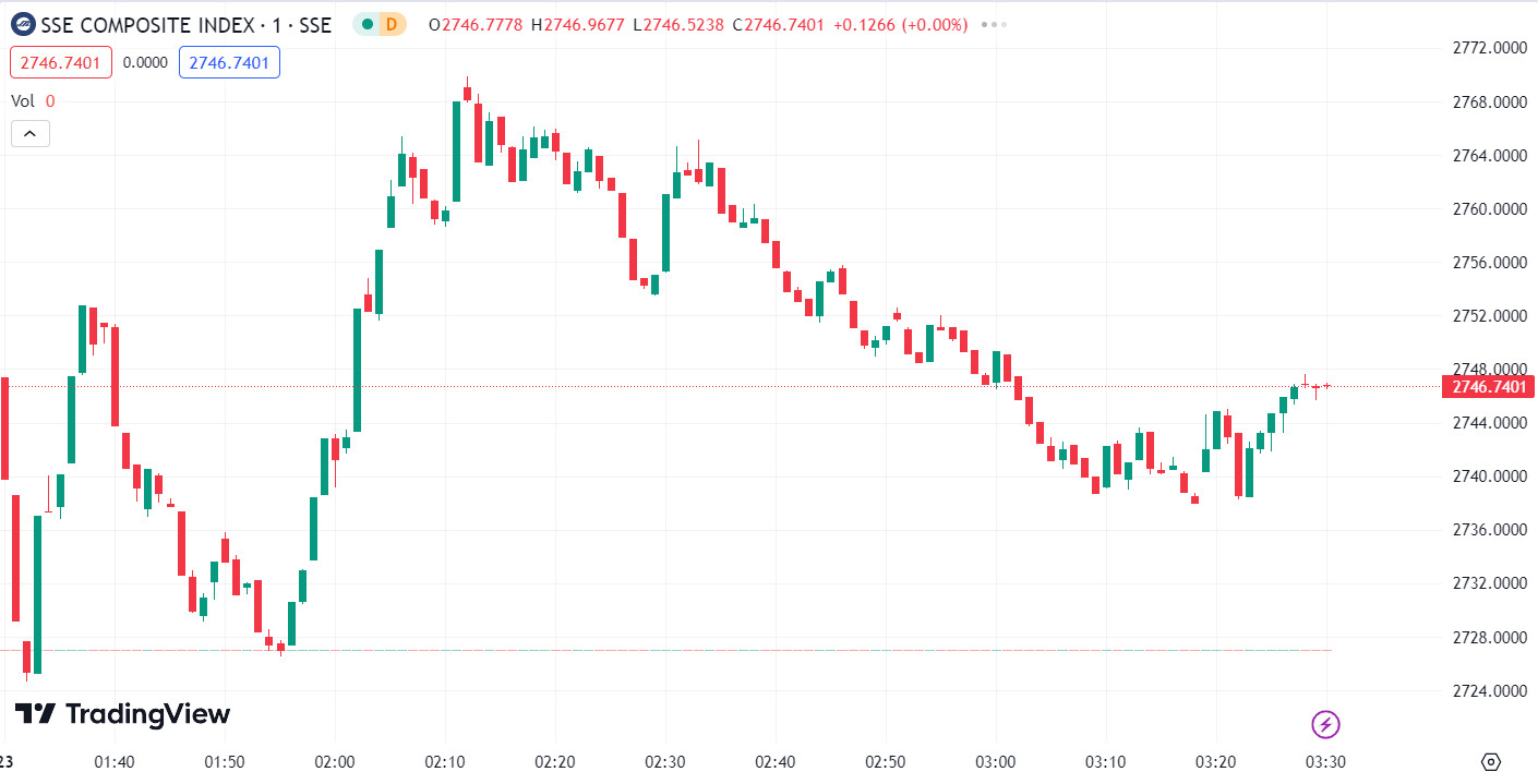 - Shanghai Composite Index (SHCOMP) fell by 0.35%, closing at 2,746.74 points.