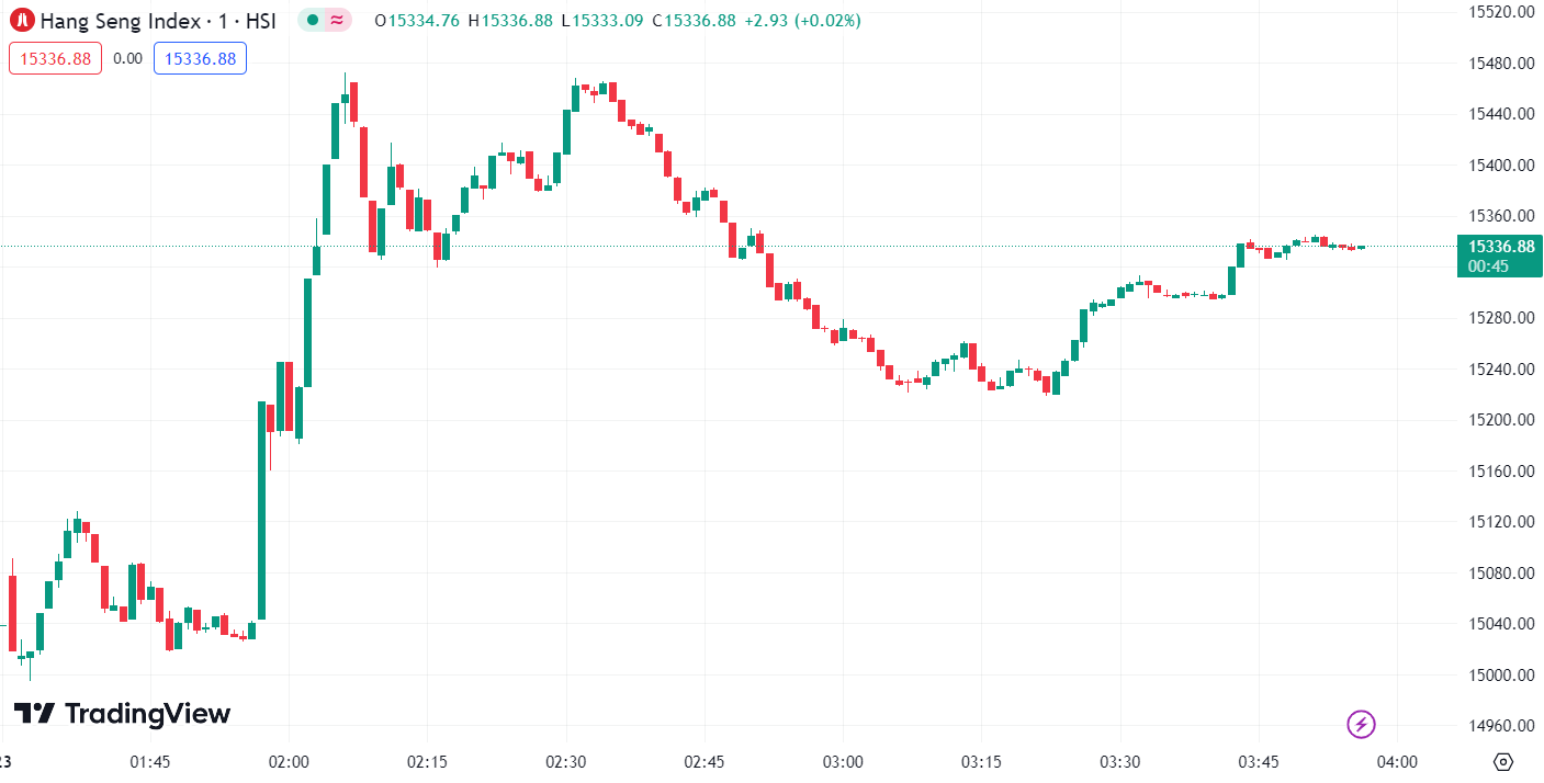 - Hang Seng Index (HSI) surged 2.46%, closing at 15,329.03 points.
