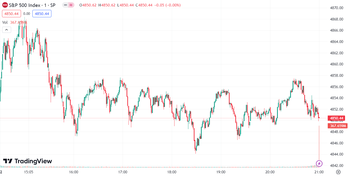 - S&P 500 Index increased by 10.62 points, up 0.22%, closing at 4,850.43 points.