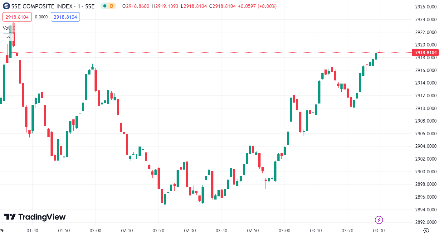 - Shanghai Composite Index (SHCOMP) rose by 0.3%, closing at 2,918.81 points.