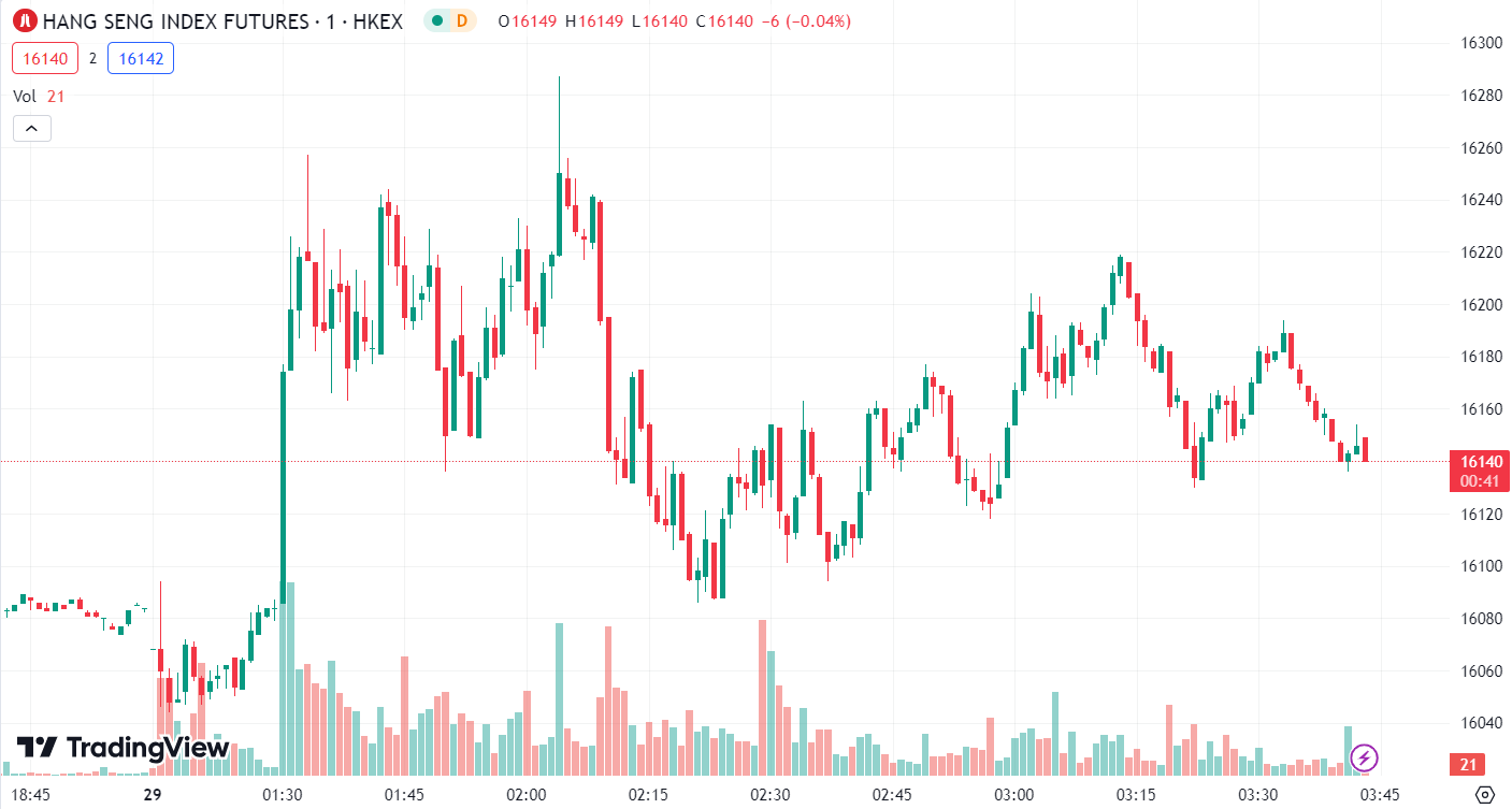 - Hang Seng Index (HSI) rose by 0.94%, closing at 16,102.02 points.