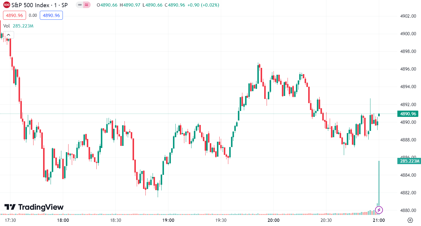 - S&P 500 Index decreased by 3.19 points, down 0.07%, closing at 4,890.97 points.