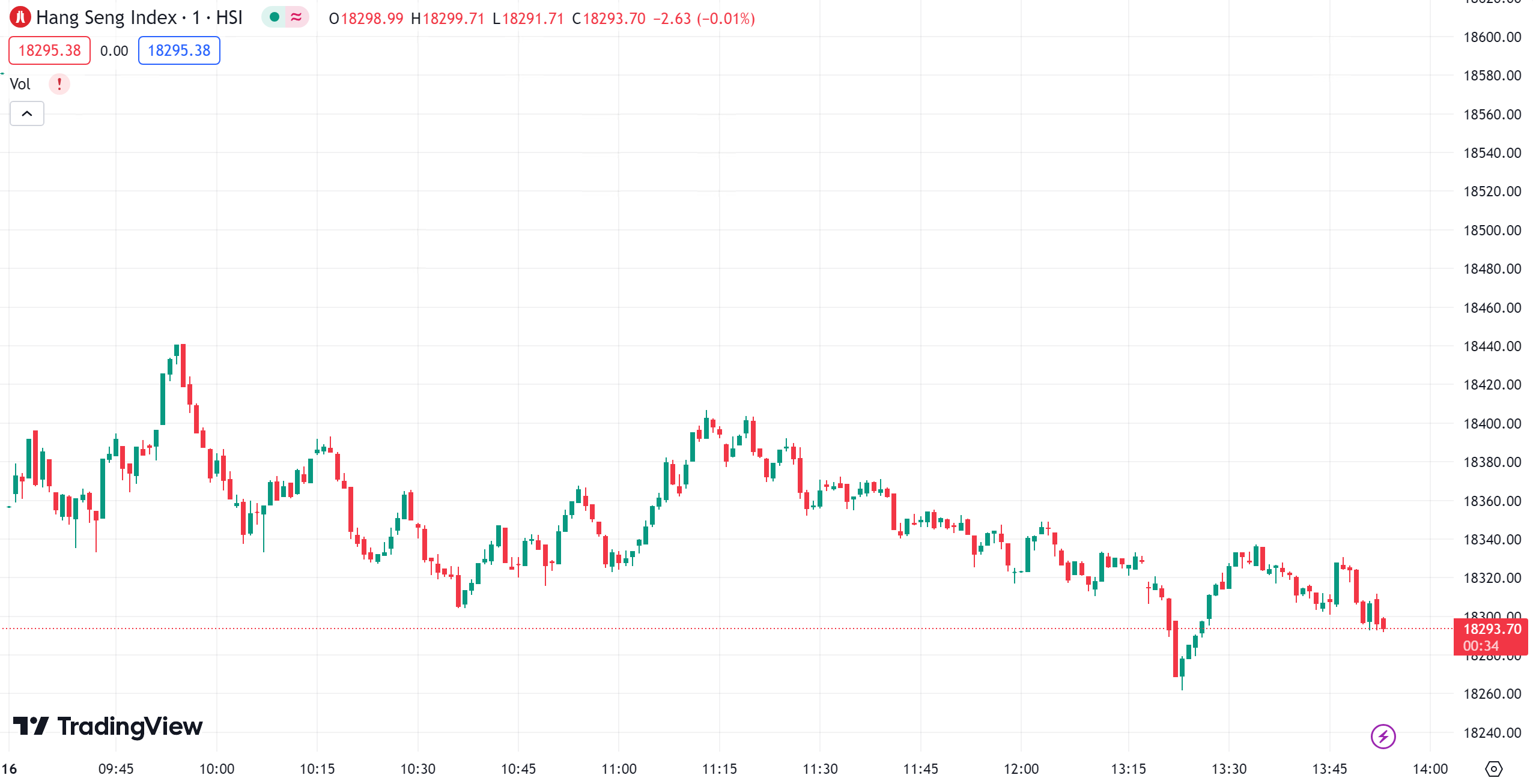 The HSI dipped as low as 18,314, a decline of up to 221 points, before recovering some ground to close with a drop of 175 points.