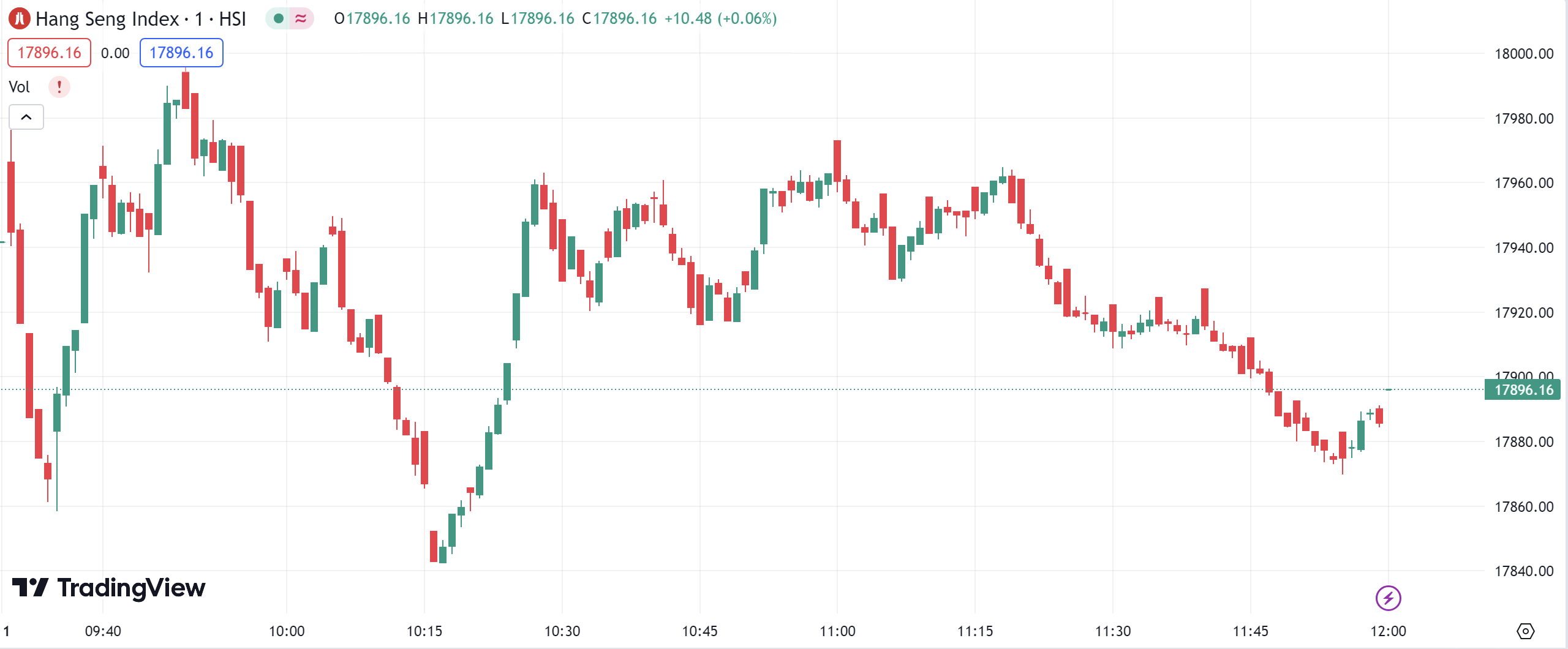 The Hong Kong stock market opened lower by 260 points, breaking through the 18,000 mark. It later narrowed its losses to 204 points but remained below 18,000.
