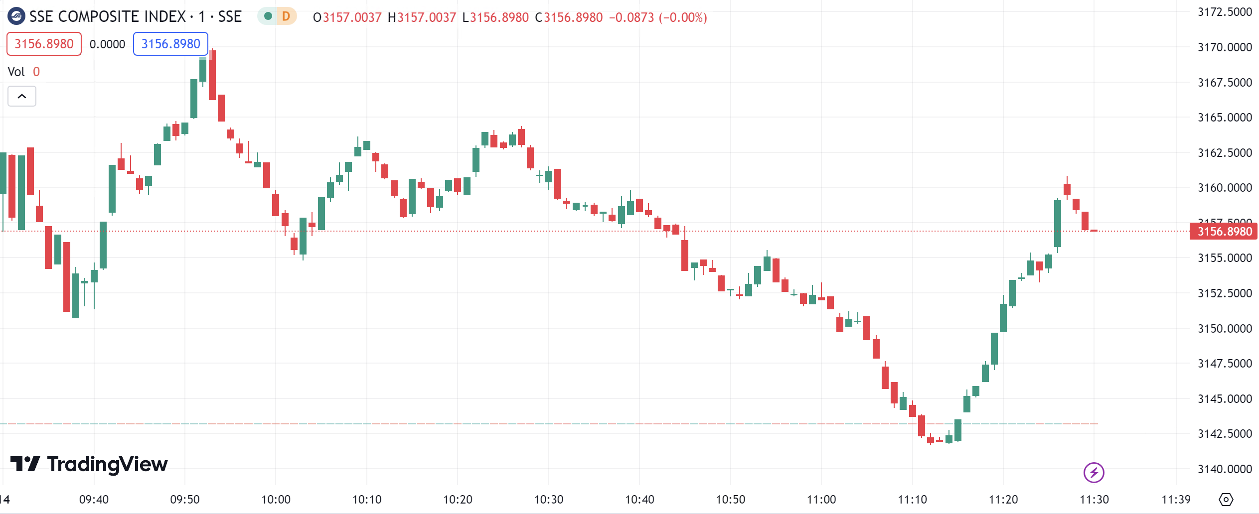 - Shanghai Composite Index (SHCOMP) fell by 1.01%, closing at 3156.9.