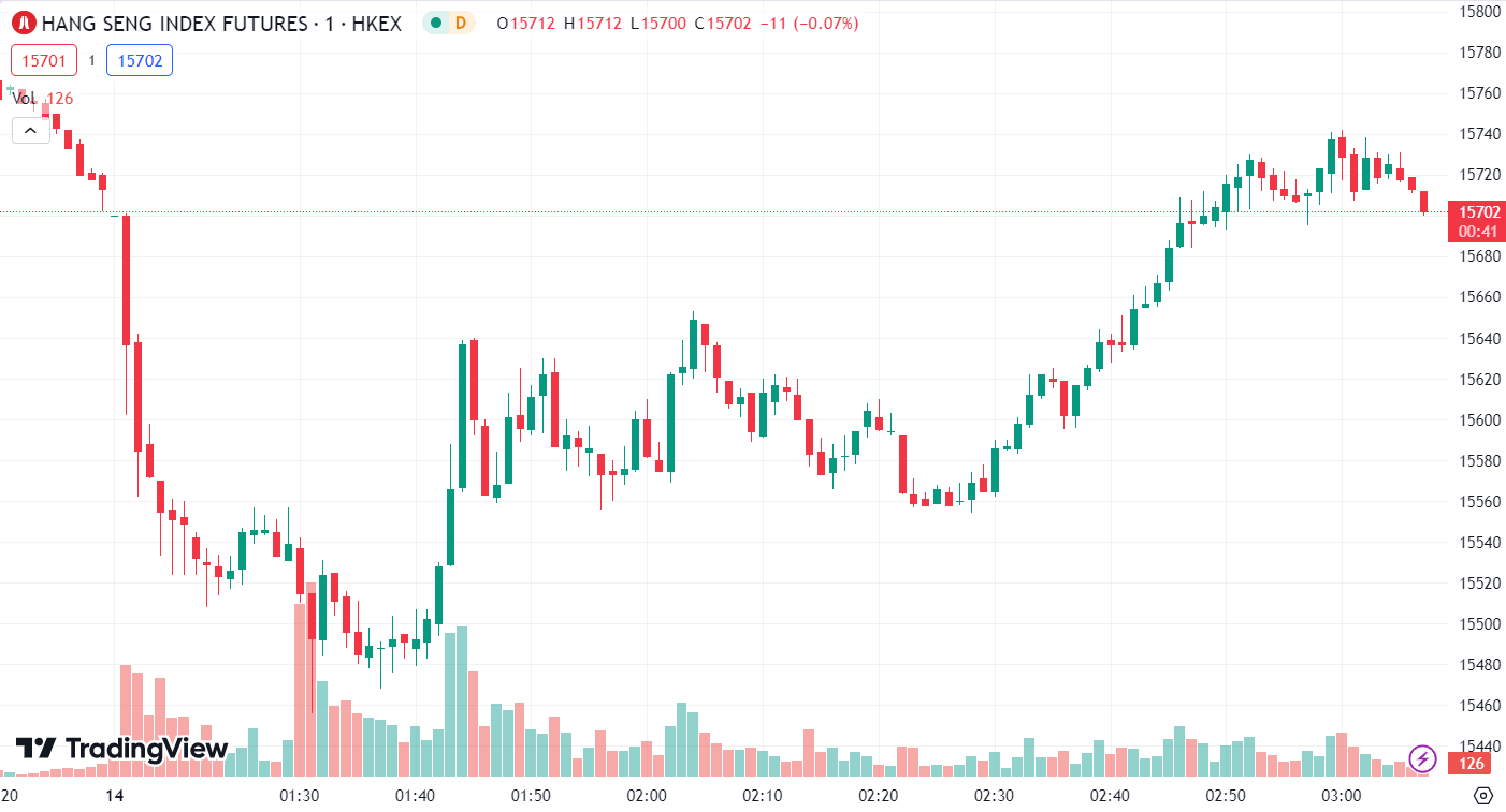 - Hang Seng Index (HSI) rose by 0.15% to close at 15,769.95 points.