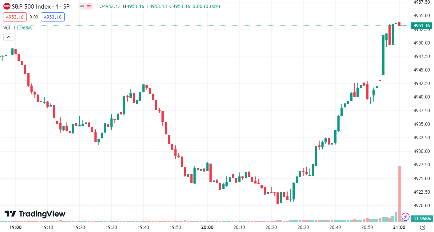 - S&P 500 Index fell by 68.67 points, or 1.37%, to close at 4,953.17 points.
