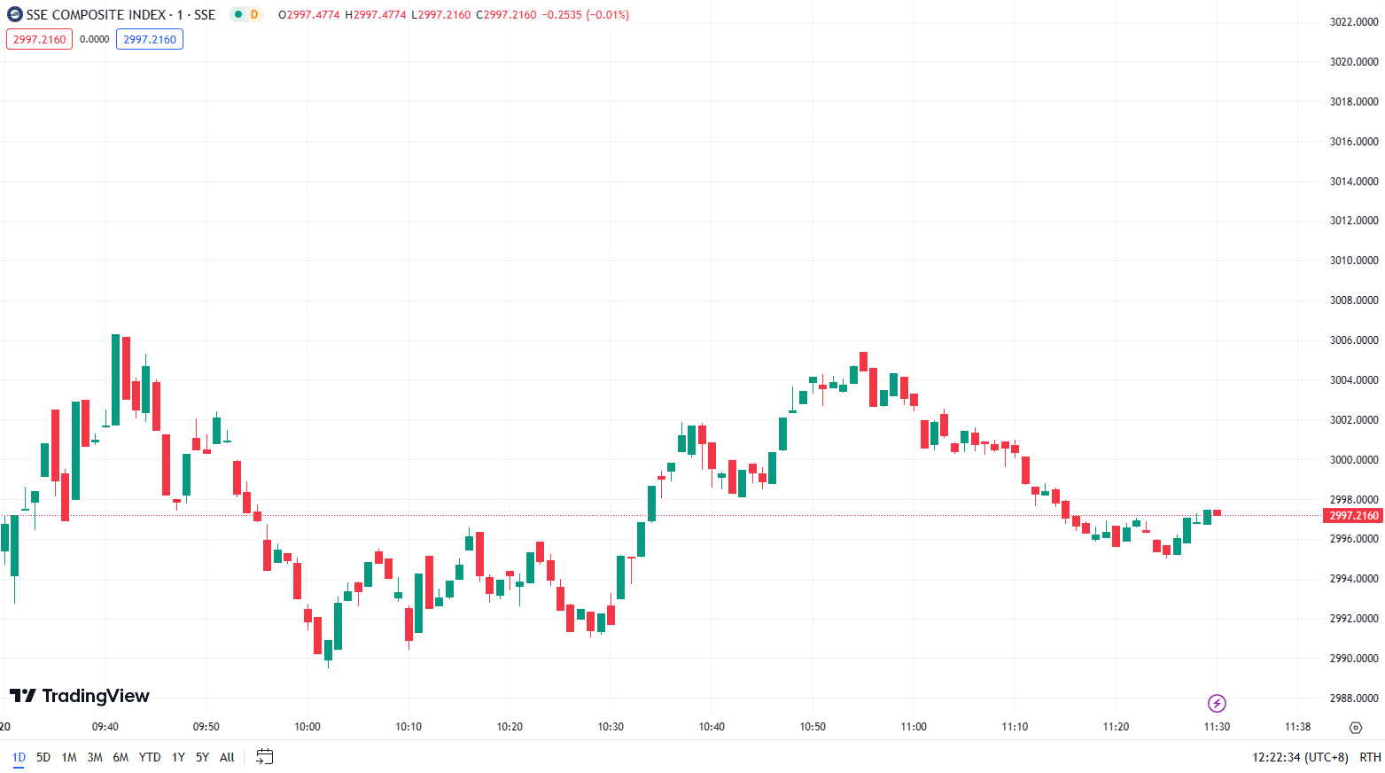 - Shanghai Composite Index (SHCOMP) fell by 0.27%, closing at 2,997.22 points.