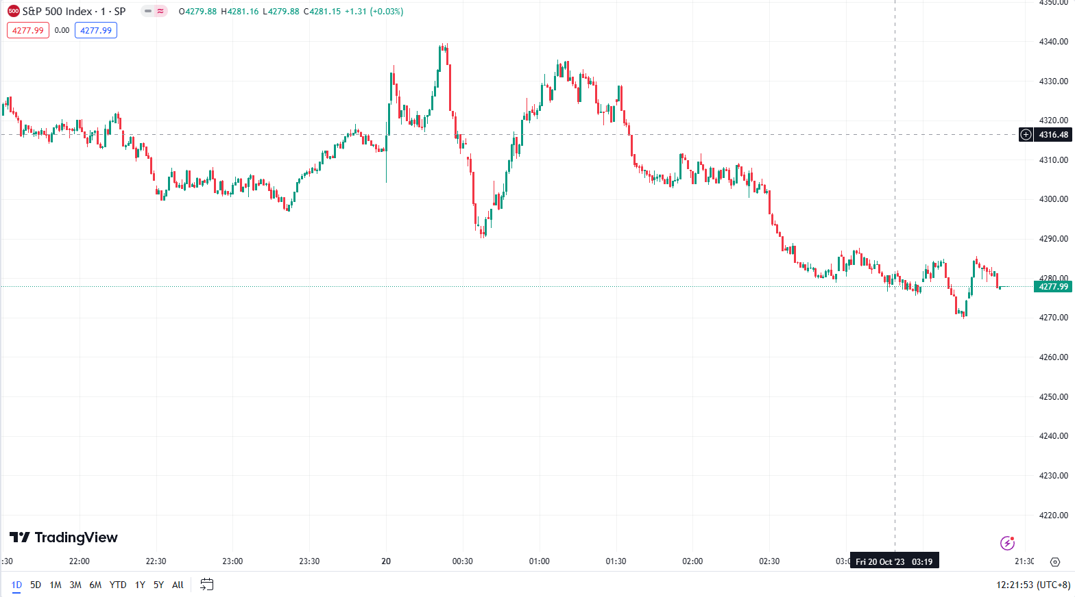 The benchmark 10-year Treasury yield surged to its highest level at 4.996%, approaching the 5% threshold. The last time this yield surpassed 5% was in 2007.