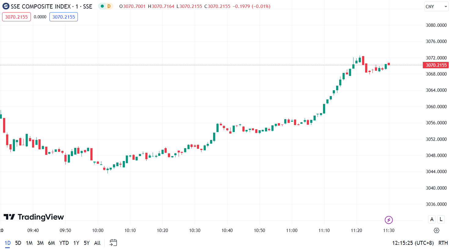 - Shanghai Composite Index (SHCOMP) increased by 0.52%, closing at 3,070.22 points.