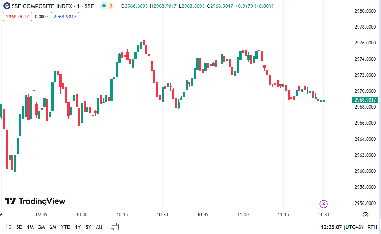 - Shanghai Composite Index (SHCOMP) dropped by 0.11%, closing at 2,968.9 points.