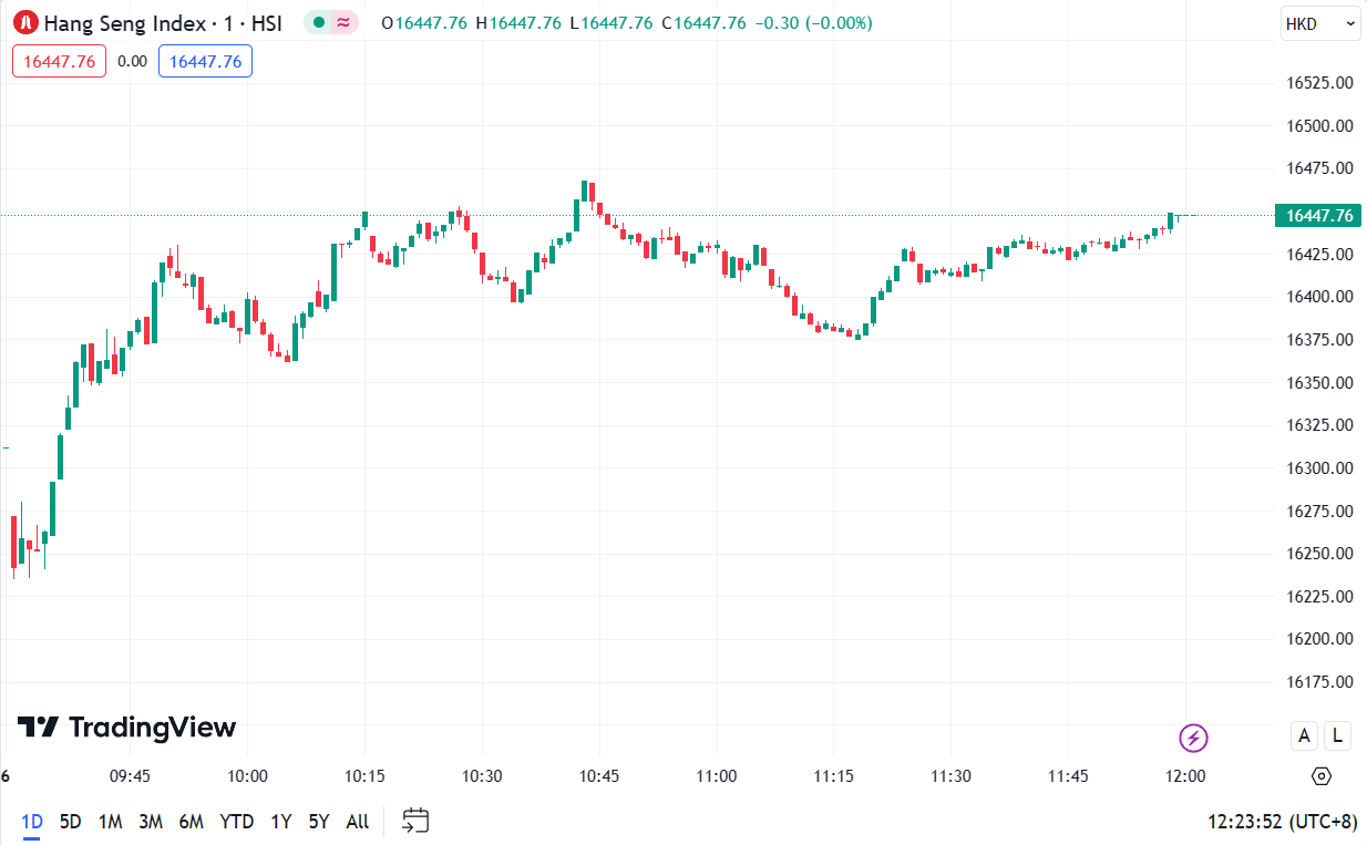 - Hang Seng Index (HSI) rose by 0.74% to close at 16,448.06 points.