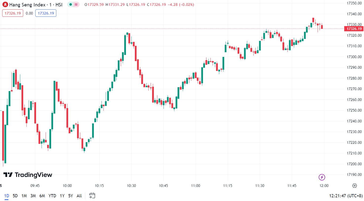 • Hang Seng Index (HSI) rose 0.76%, closing at 17,326.19 points.