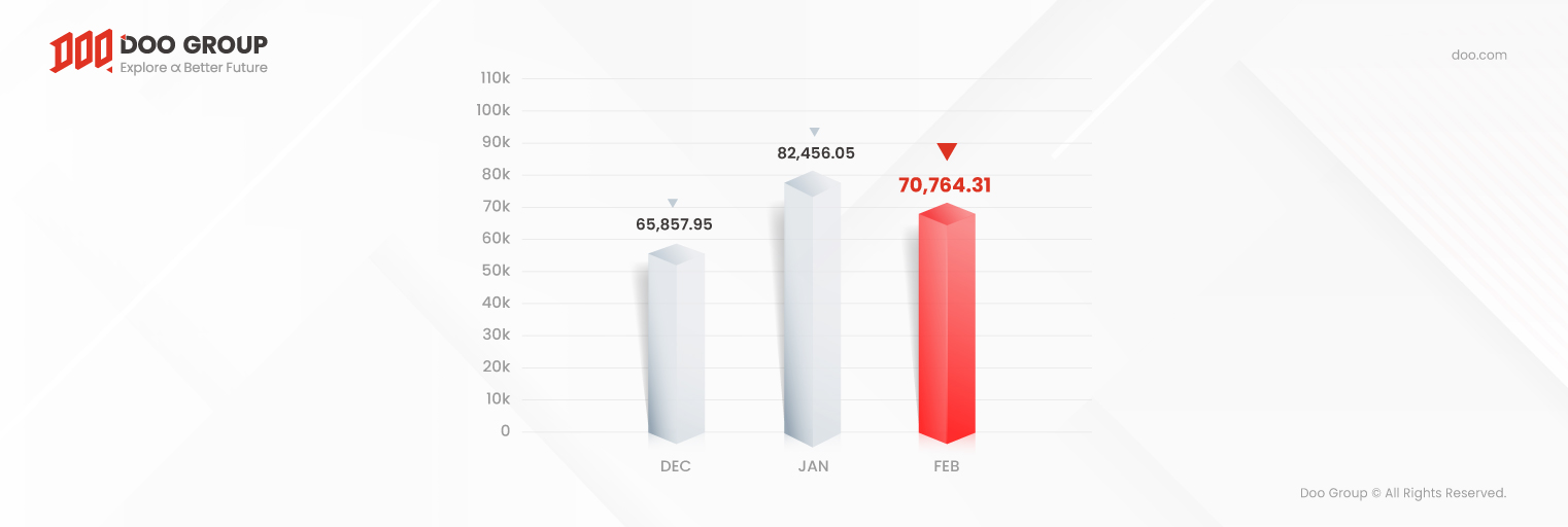 The US released a variety of key economic data in February, and they surpassed the market’s expectations, gaining a strong reaction from the market. As risk aversion rose, investors adopted a “wait-and-see” position towards the market, causing Doo Prime’s trading volume to drop slightly in February.