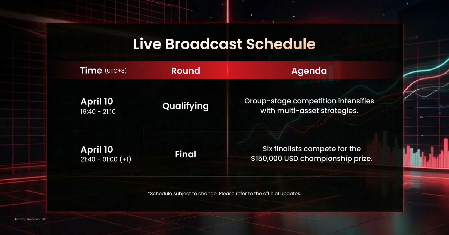 On April 10 at 19:40 (GMT+8), the remaining traders will compete for the $150,000 championship prize.