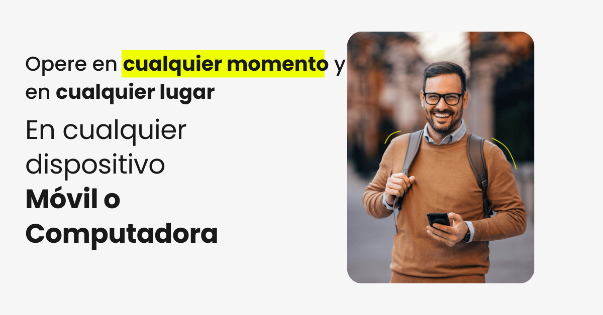 Con una conexión a Internet estable (WiFi o 5G), puedes monitorear los mercados, administrar posiciones y ejecutar operaciones al instante, sin importar dónde estés.