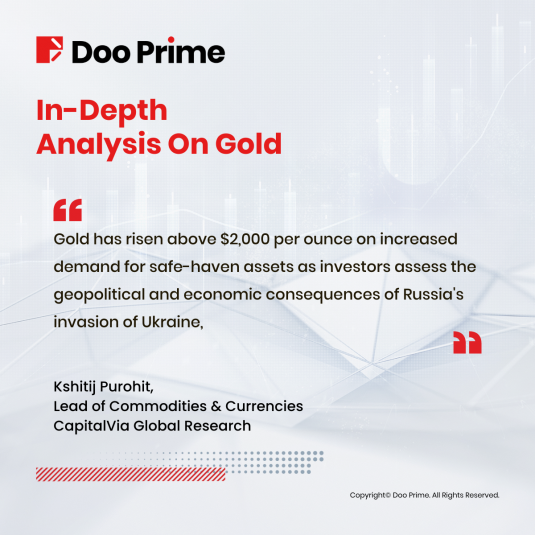 “Gold has risen above $2,000 per ounce on increased demand for safe-haven assets as investors assess the geopolitical and economic consequences of Russia’s invasion of Ukraine,” said Kshitij Purohit, Lead of Commodities and Currencies CapitalVia Global Research.