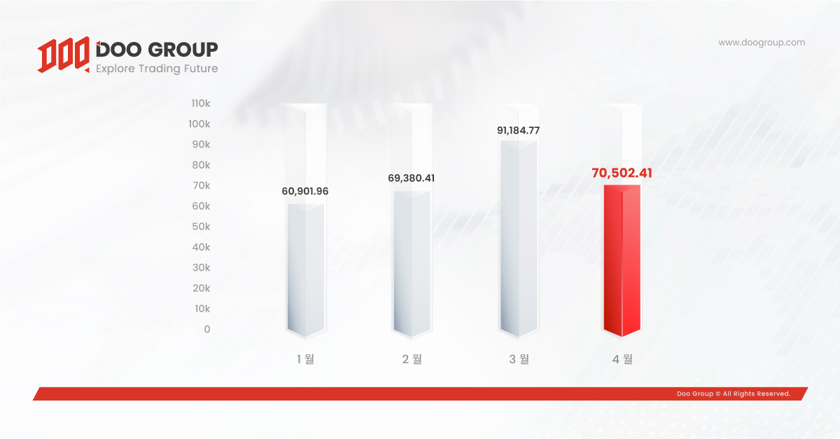 • 4월 총 거래량 705억 달러
