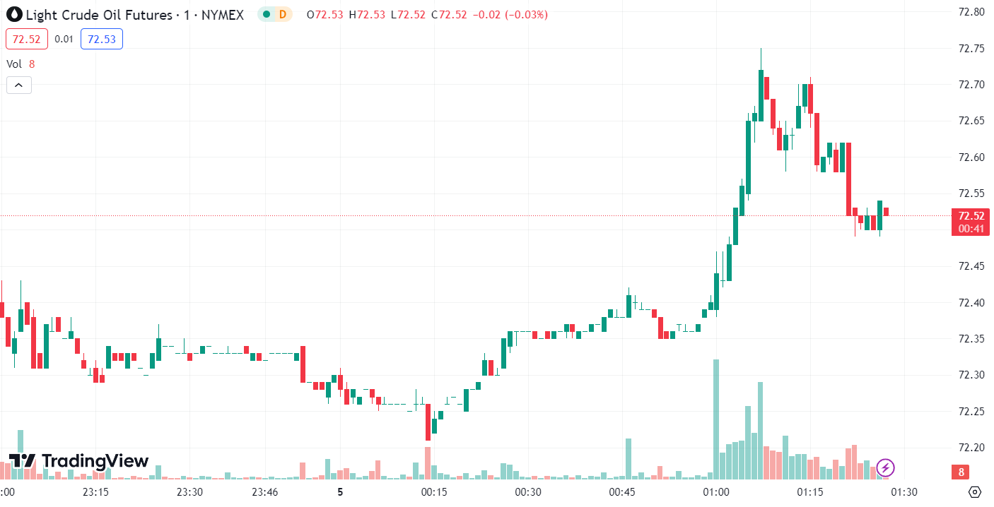 WTI crude oil futures closed down USD 0.51 per barrel, a decrease of 0.70%, settling at USD 72.19 per barrel. Earlier in the session, prices had risen by nearly 1.5% to USD 73.97 per barrel. Brent crude oil prices also fell, dropping USD 0.66 per barrel, a decrease of 0.8%, to close at USD 77.59 per barrel.
