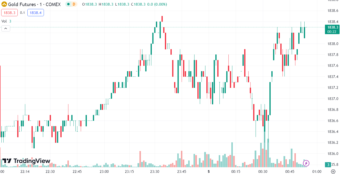 Gold prices experienced a short-lived uptick of $5, reaching the $1830 level before retracing. In the U.S. market, gold dipped 0.09%, or $1.62 per ounce, closing at $1821.19 per ounce.