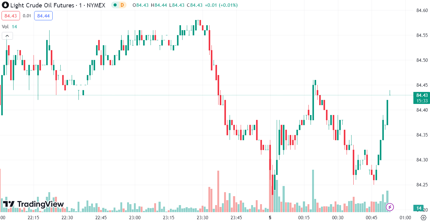 On Wednesday, in the U.S. market, WTI crude oil closed at $84.22, marking a significant decline of $5.01 or 5.61%. Brent crude oil settled at $85.81 per barrel, down $5.11 or 5.62%. Calculated from the daily lows, both major crude oil futures experienced drops of over $5, leading to a cumulative decrease of approximately $10 in oil prices since last Friday.