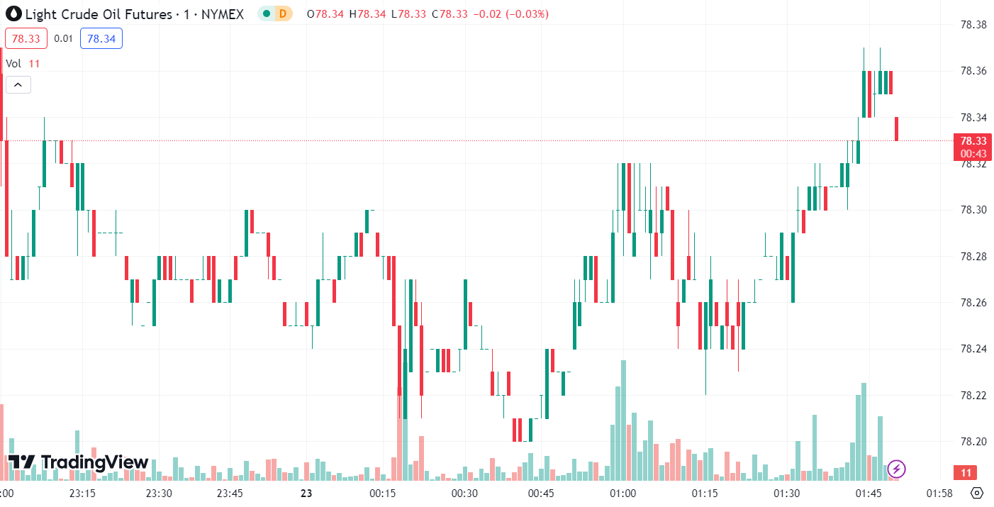 In the late US session, bullish momentum pushed prices higher, breaking through the morning’s opening decline level of USD 78.4 and continuing to rise to around USD 78.9 before retracting and closing with oscillations.