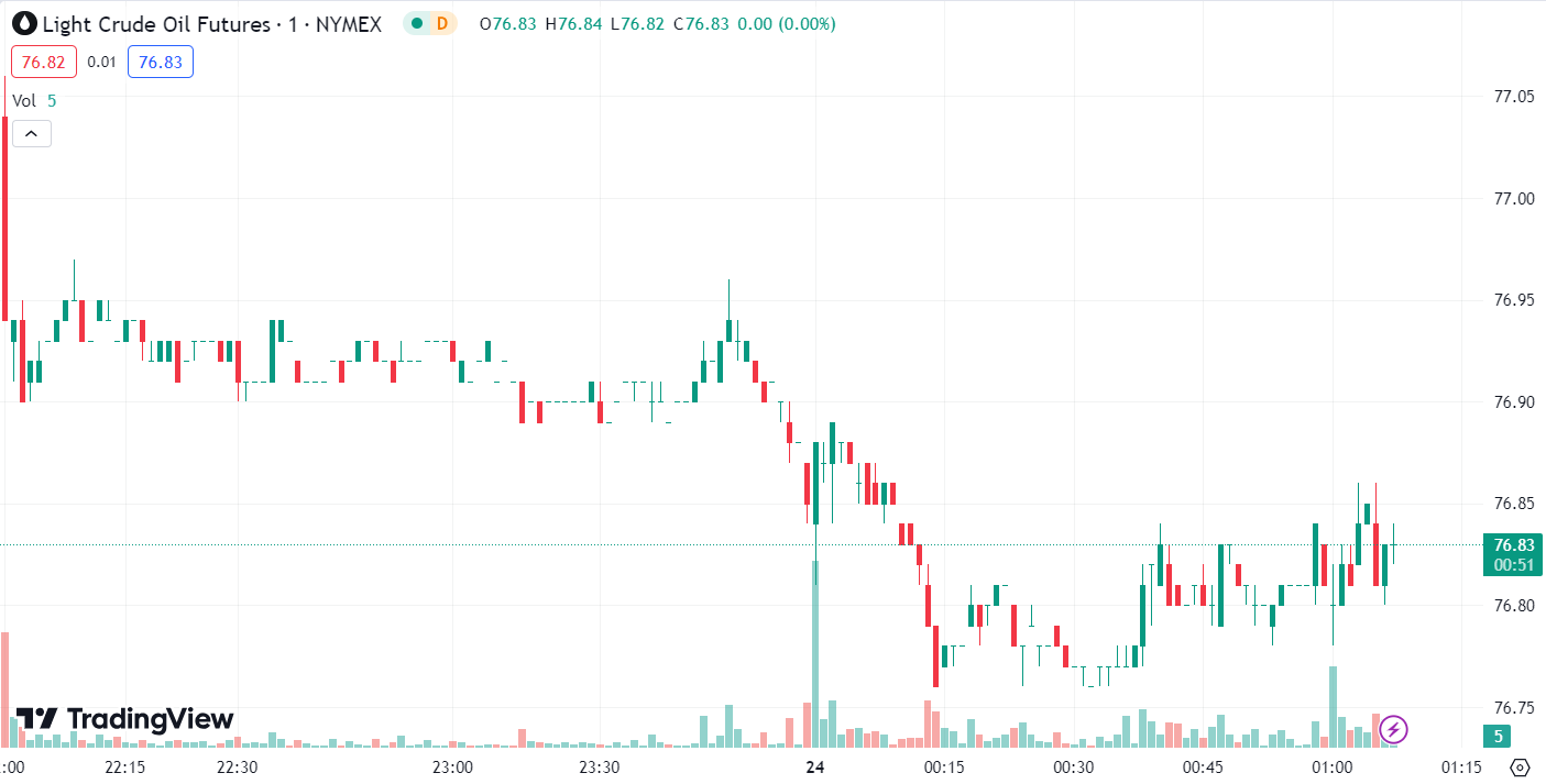 In the evening U.S. session, prices accelerated further, breaking through the USD 78 level and reaching USD 78.60 before quickly falling back. By early morning, oil prices had tumbled down past the USD 77 level, closing weakly around USD 76.40.