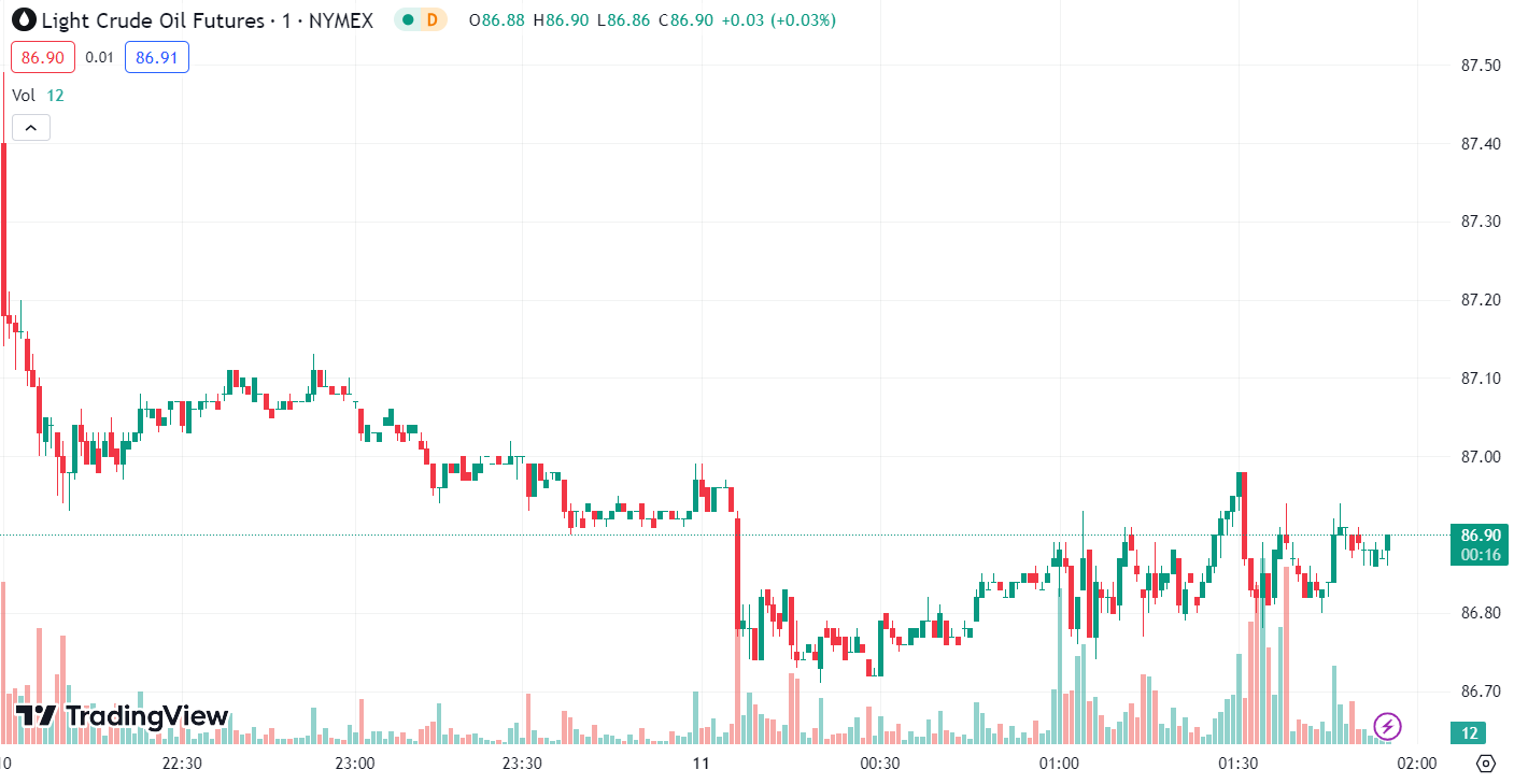 Crude oil prices continued their bullish trend in volatile trading. During the Asia-Europe session, prices experienced a slight decline, testing the $87 per barrel threshold. In the afternoon, prices stabilized and rebounded around the $86.10 per barrel mark.