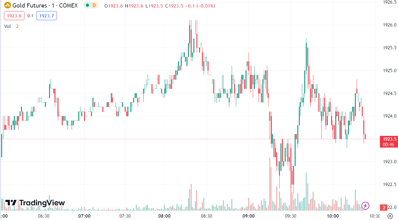 The price of gold has been fluctuating below $1942. Yesterday, it started the day at $1922.9 per ounce, reaching a daily high of $1931 per ounce before quickly retreating during the U.S. session due to fundamental pressures. The daily low touched $1910.6 per ounce, and it ultimately closed at $1913.6 per ounce.