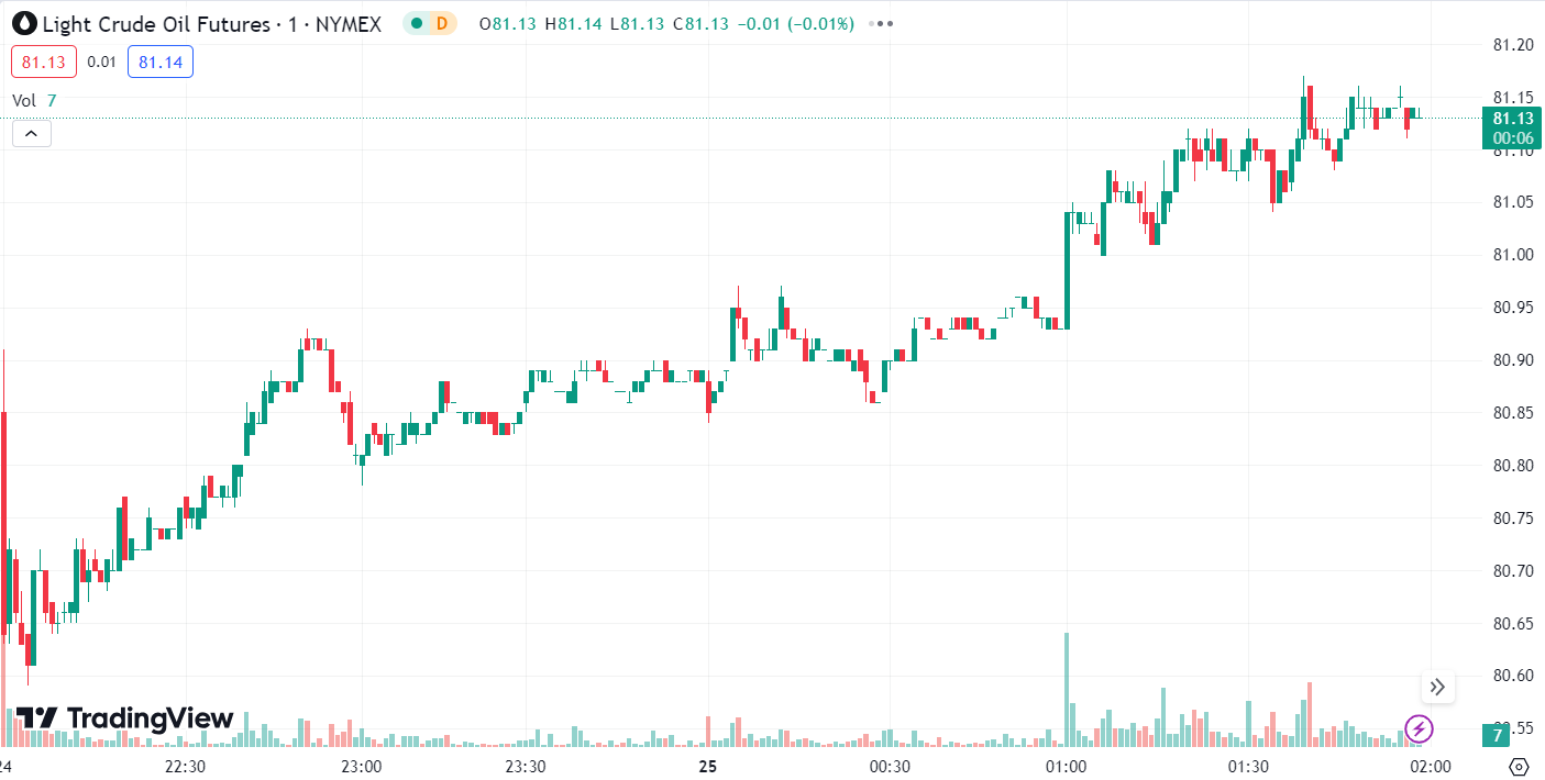 WTI crude oil briefly surged to USD 81 per barrel in the pre-US session but later gave back all gains, ultimately closing down by 0.01% at USD 80.74 per barrel. Brent crude oil also fell by 0.02% to USD 85.52 per barrel.