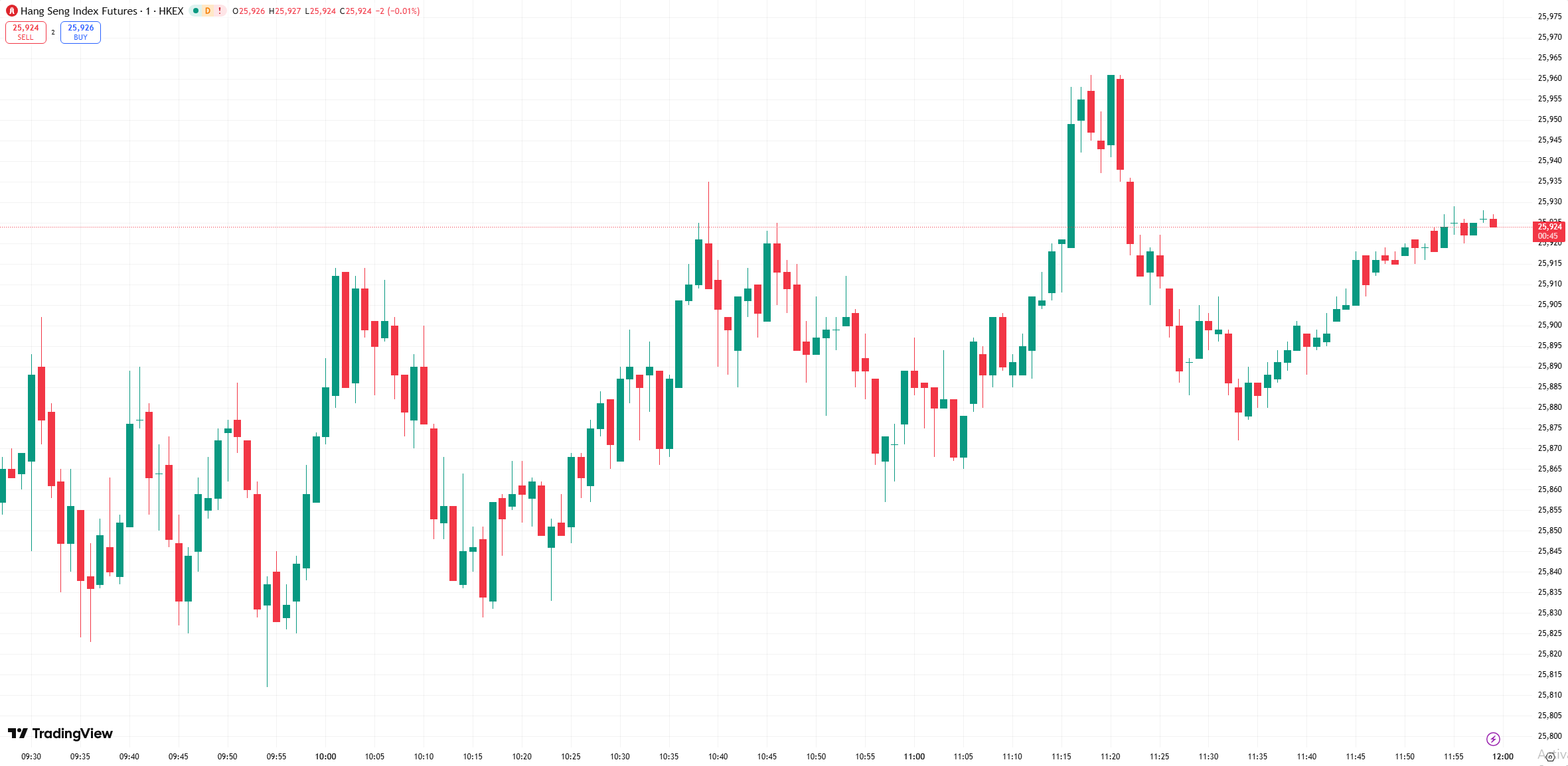 Hong Kong equities fell across the board. By midday, tech stocks were mixed, with Xiaomi and Baidu up more than 1%, while NetEase dropped over 1%.