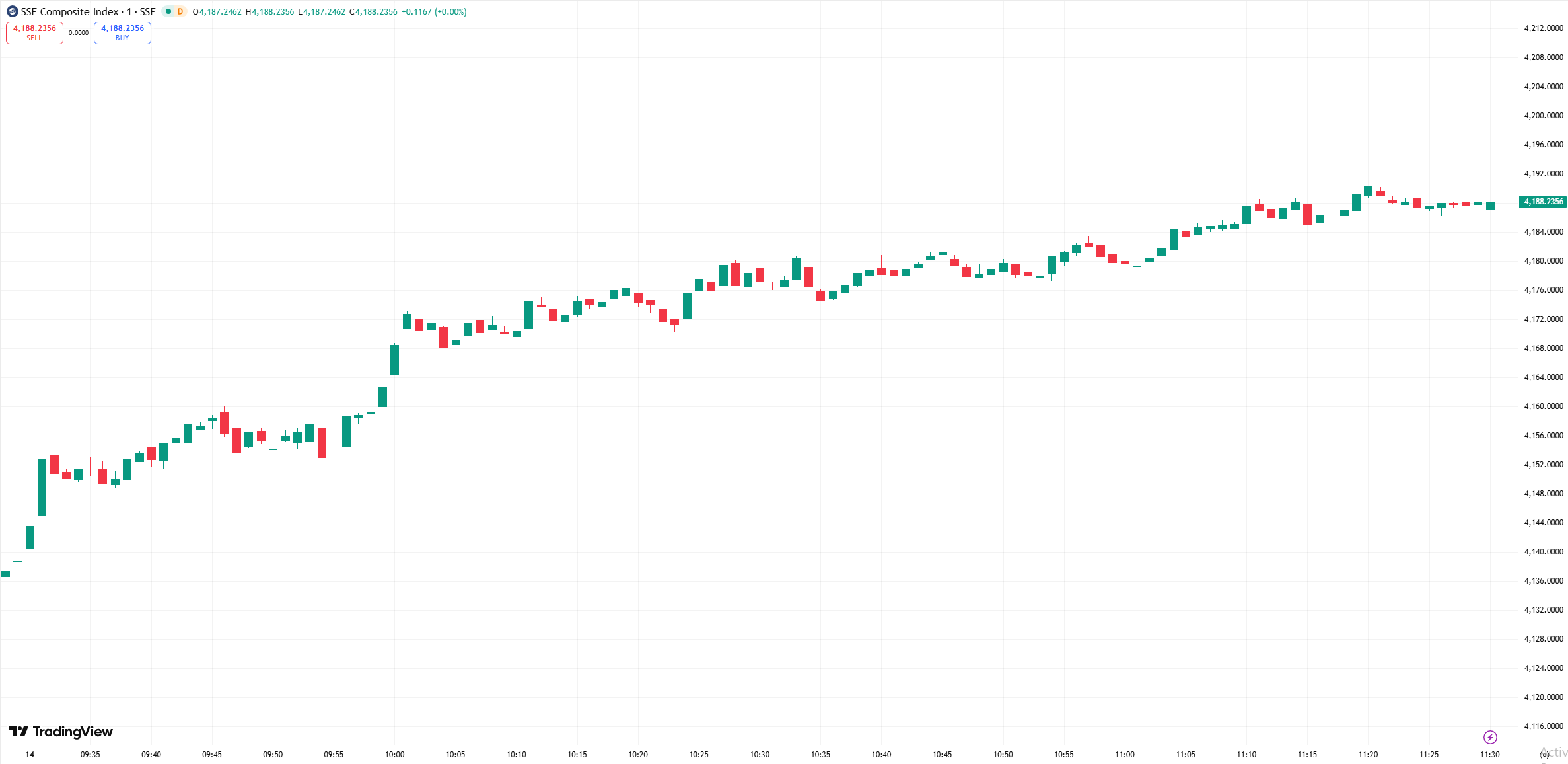 Mainland Chinese stocks rallied strongly. The Shanghai Composite rose 1.2%, Shenzhen climbed 1.98%, and the ChiNext gained 2.24%, with the Beijing Stock Exchange 50 up nearly 3%.