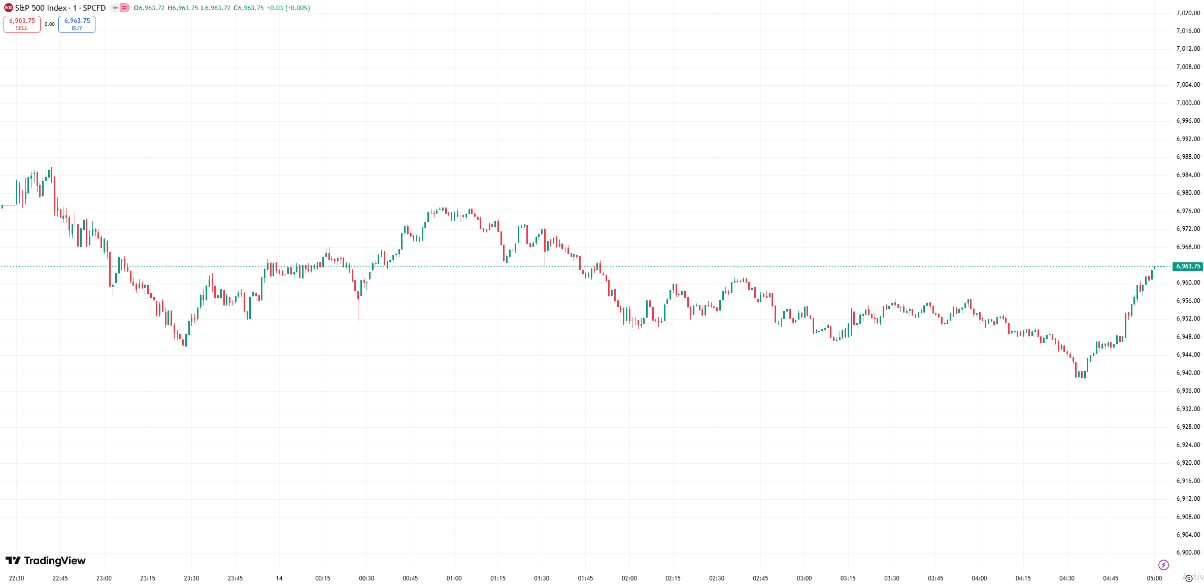 - S&P 500: −13.56 (−0.19%) to 6,963.71