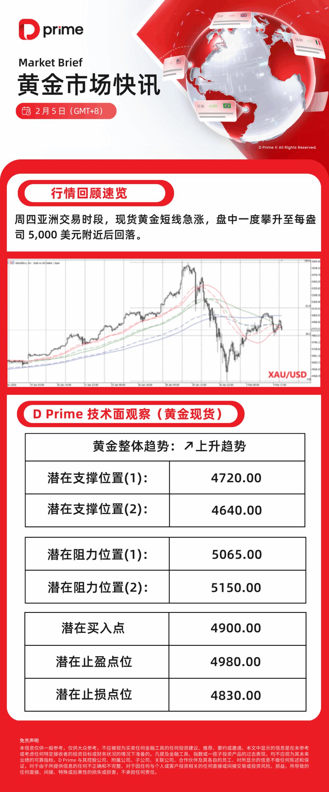 D Prime 黄金市场快讯 | 2026 年 2 月 5 日