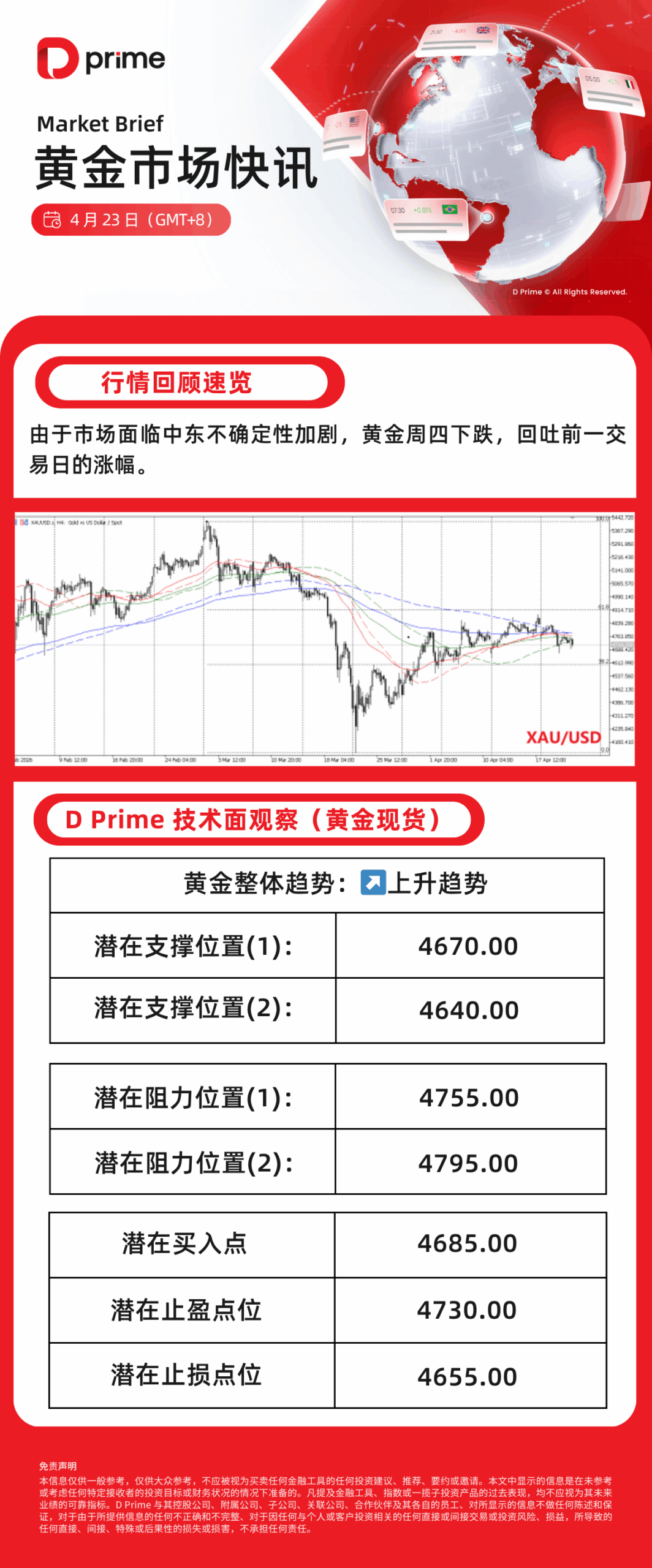 D Prime 黄金市场快讯 | 2026 年 4 月 23 日