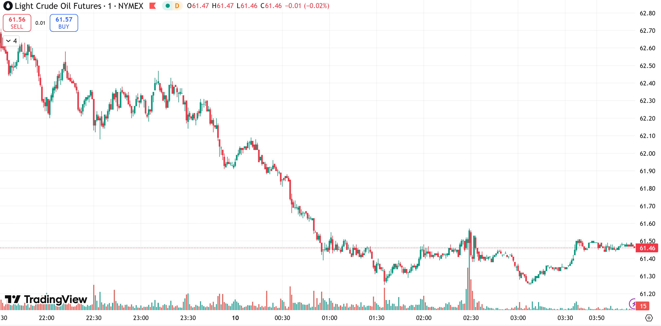 周五,现货黄金交投于 3984.70 美元/盎司附近,金价周四自历史高位 4059.07 美元/盎司回落,因美元走高,以及黄金投资者在以色列与哈马斯达成停火协议后获利了结;美原油交投于 61.48 美元/桶附近,油价周四收低,此前以色列和巴勒斯坦激进组织哈马斯签署加沙停火协议。