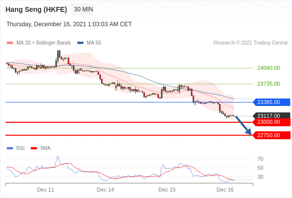 在 23385.00 之下,看跌,目标价位为 23000.00 ,然后为 22750.00 。