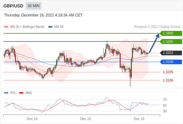 在 1.3230 之上,看涨,目标价位为 1.3280 ,然后为 1.3300 。