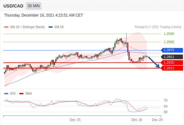在 1.2875 之下,看跌,目标价位为 1.2830 ,然后为 1.2810 。