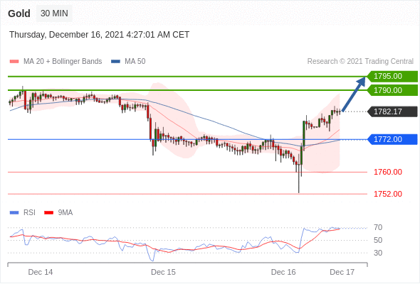 在 1772.00 之上,看涨,目标价位为 1790.00 ,然后为 1795.00 。