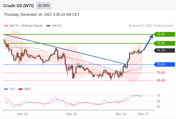 在 70.65 之上,看涨,目标价位为 72.30 ,然后为 73.00 。