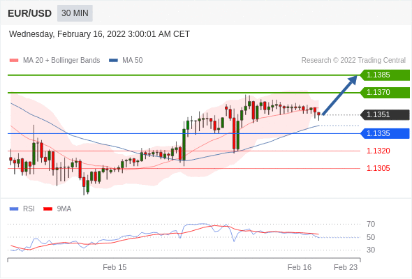 在 1.1335 之上,看涨,目标价位为 1.1370 ,然后为 1.1385 。