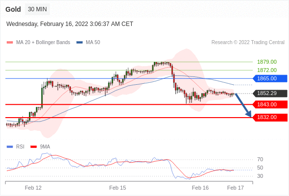 在 1865.00 之下,看跌,目标价位为 1843.00 ,然后为 1832.00 。