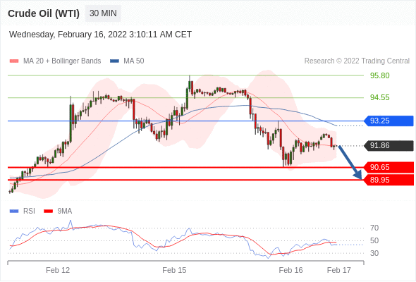 在 93.25 之下,看跌,目标价位为 90.65 ,然后为 89.95 。