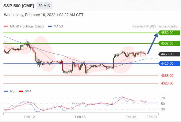 在 4410.00 之上,看涨,目标价位为 4502.00 ,然后为 4550.00 。