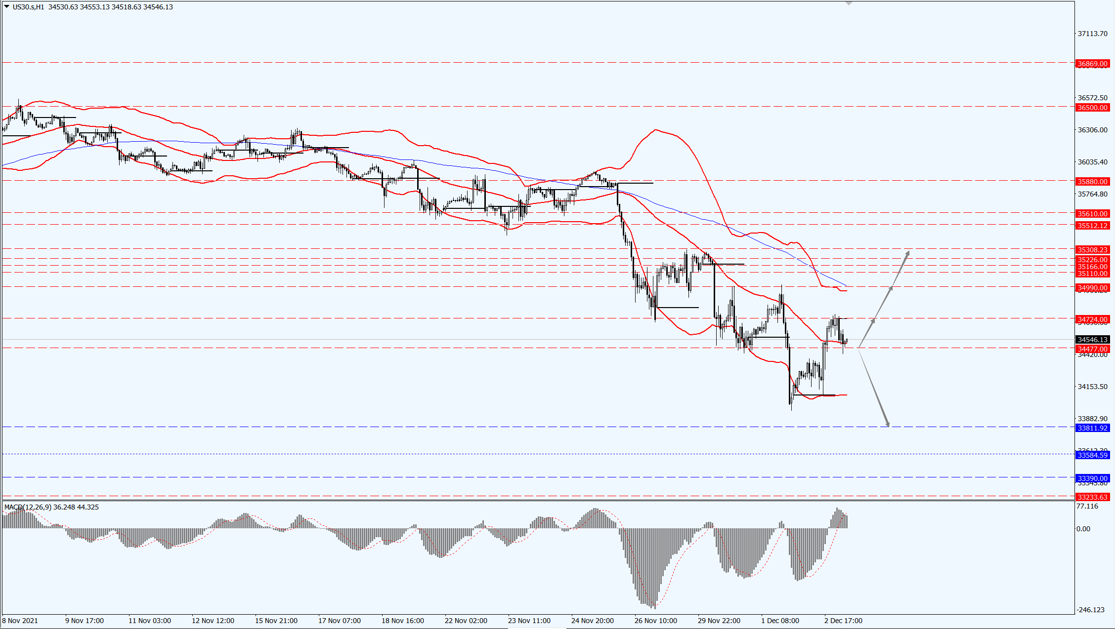 道指今日依旧关注 34477 一线的支撑力度,如果道指运行于 34477 一线上方,届时关注 34724 和 34990 两个位置的压制力度;如果道指力度下破 34477 一线,则将打开进一步的下行空间,届时关注 33811 一线的支撑力度。